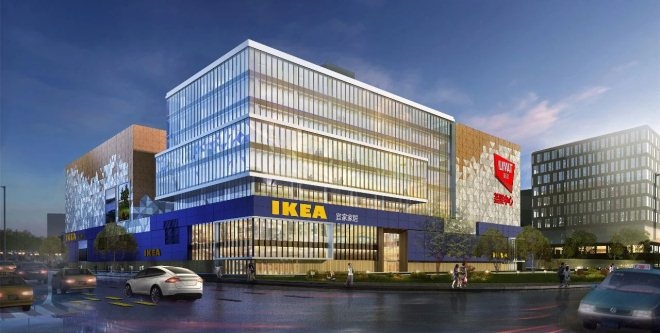 宜家全球較大投資項目薈聚中心上海臨空項目位于福泉路西側、協和路東側、金鐘路北側、北翟路南側,擬建1幢地上8層、地下4層的綜合商辦體??偨ㄖ娣e約43.7萬平方米,其中:地上建筑面積約17.9萬平方米,