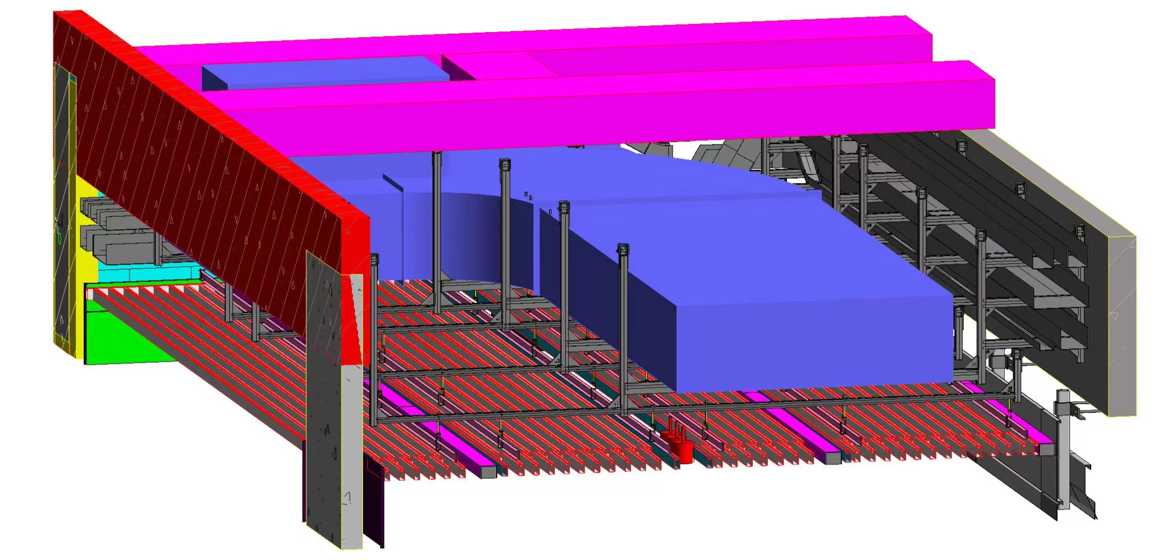 本工程分三個標段,合計總建筑面積為56.1萬㎡,建筑最高高度34.8m,其中一、三標段為多層大跨度鋼結構廠房。眾所周知,對于鋼結構廠房支架設計一直是行業內的難題。華固充分利用BIM技術,自主研發(fā)的成品